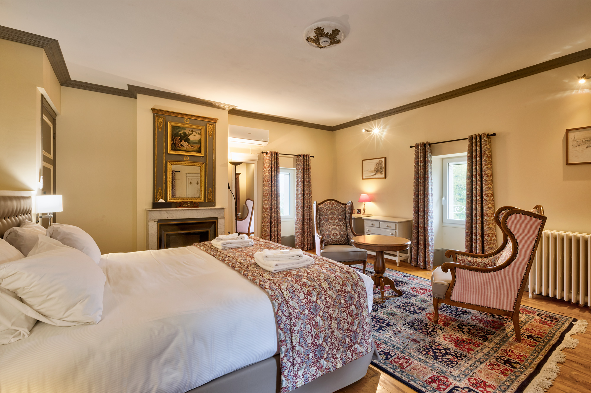 Le château compte 10 chambres luxueuses et 10 salles de bains « ensuite » ainsi qu'une chambre enfant.