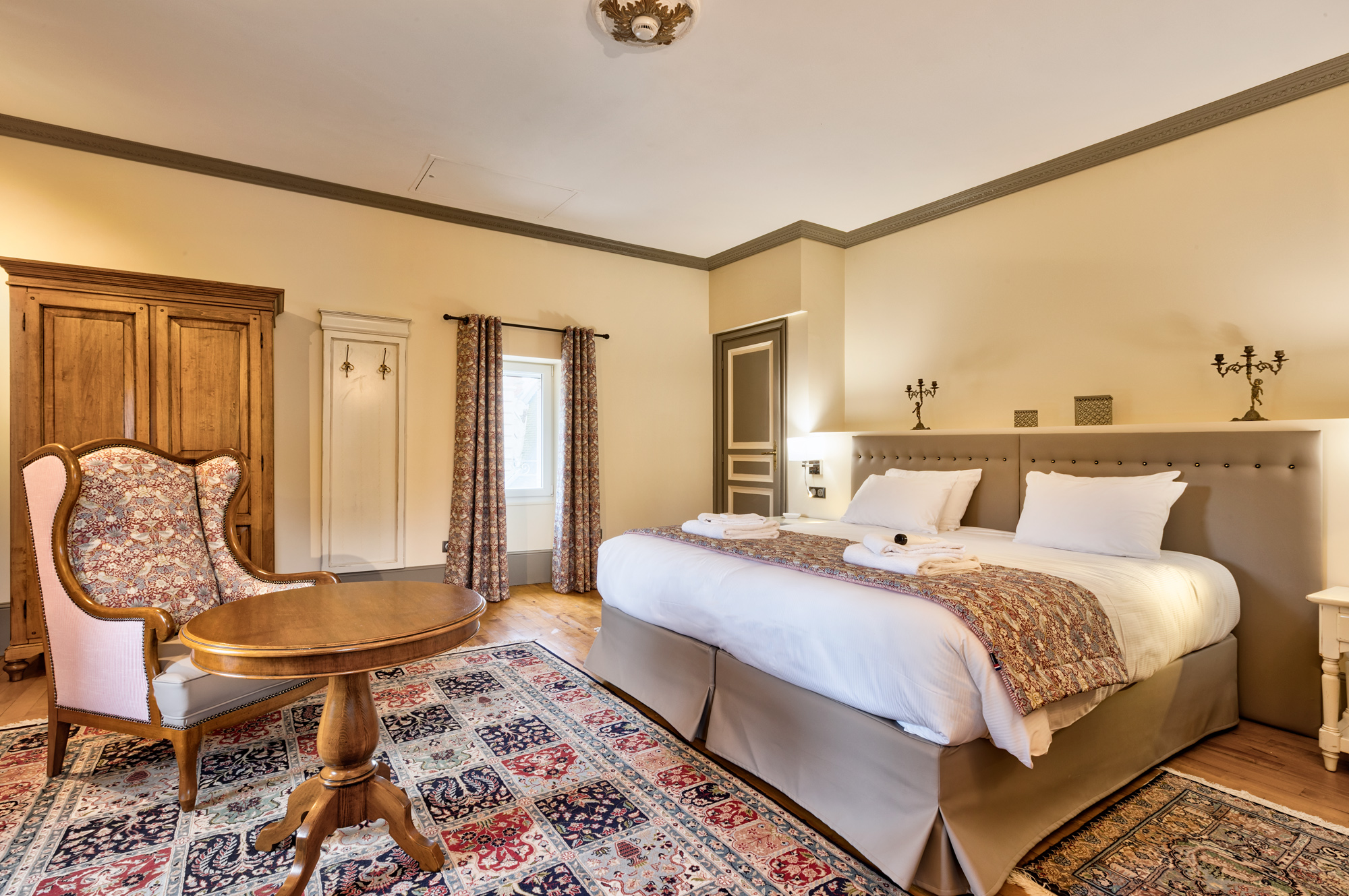 Le château est éloigné des routes principales et de toute nuisance sonore. D'autre part, les chambres sont éloignées les unes des autres et séparées par des halls et des couloirs, ce qui préserve l'intimité de chacun.